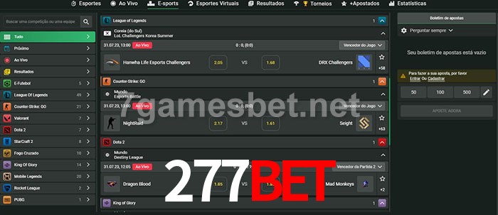 O 277BET oferece uma grande seleção de opções de apostas em e-sports com probabilidades competitivas